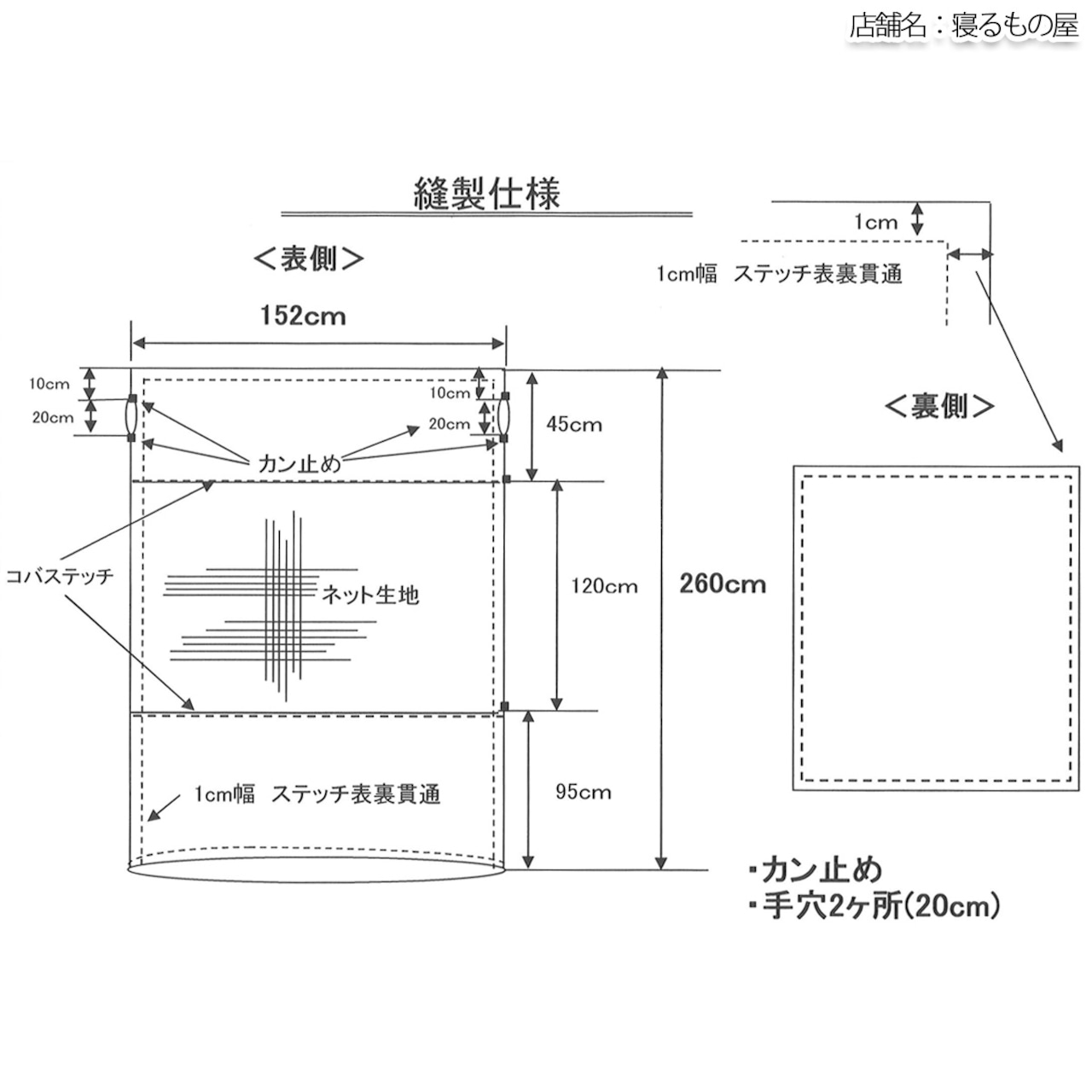 縦が260cmあるので、布団を入れて、余分なカバー裾を