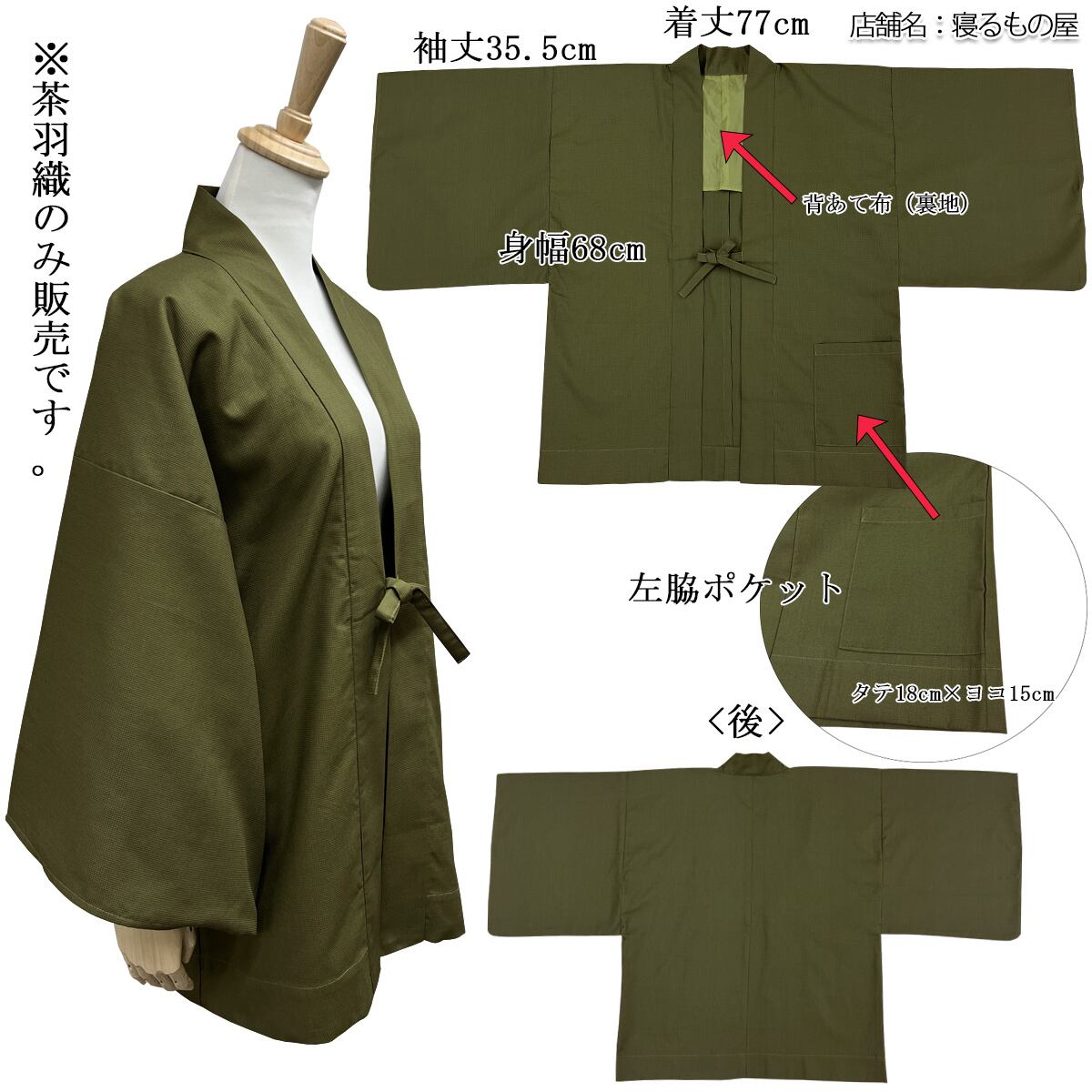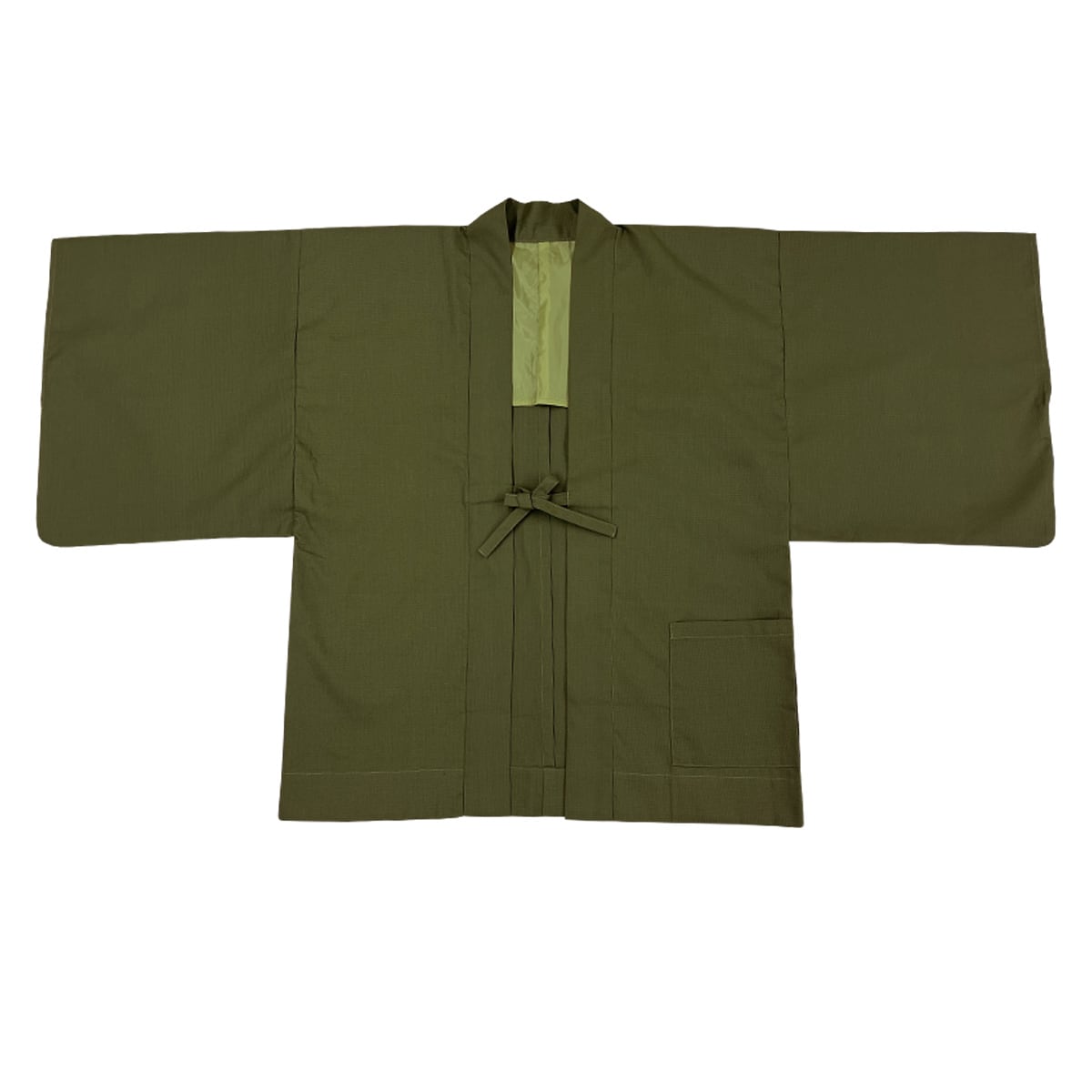 茶羽織 業務用 ポリ65% 綿35% 大人用 男女兼用 ミニワッフル織り 背あて裏地付 ダークグリーン系 三露産業 病衣 部屋着 ホテル 旅館 民宿 民泊
