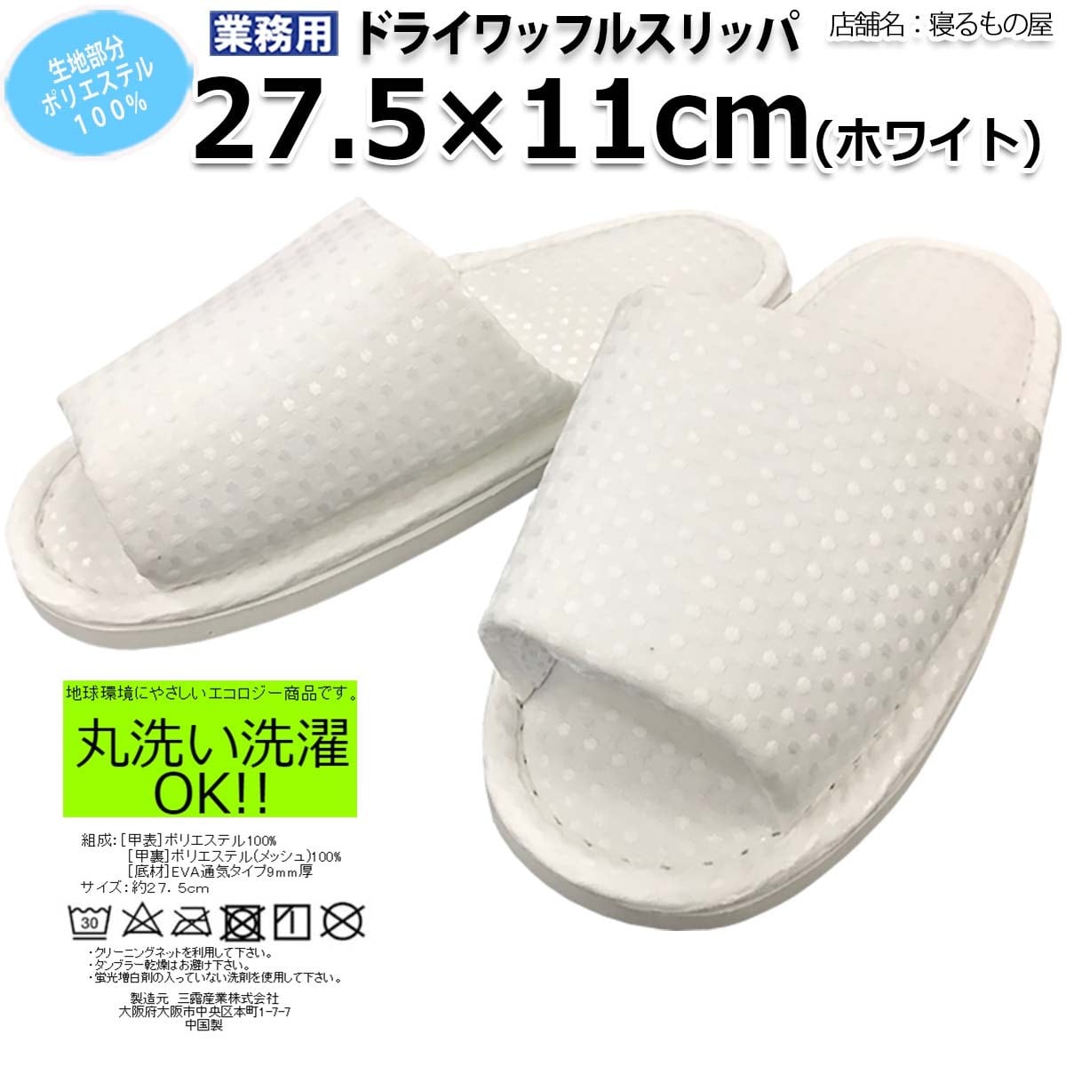 スリッパ業務用【50足入り】布地部ポリ100% ソール27.5cm ドライワッフル 丸洗い洗濯可能 ホワイト 白 三露産業 パジャマ 病衣 部屋着 ホテル 旅館 民宿 民泊/367747620