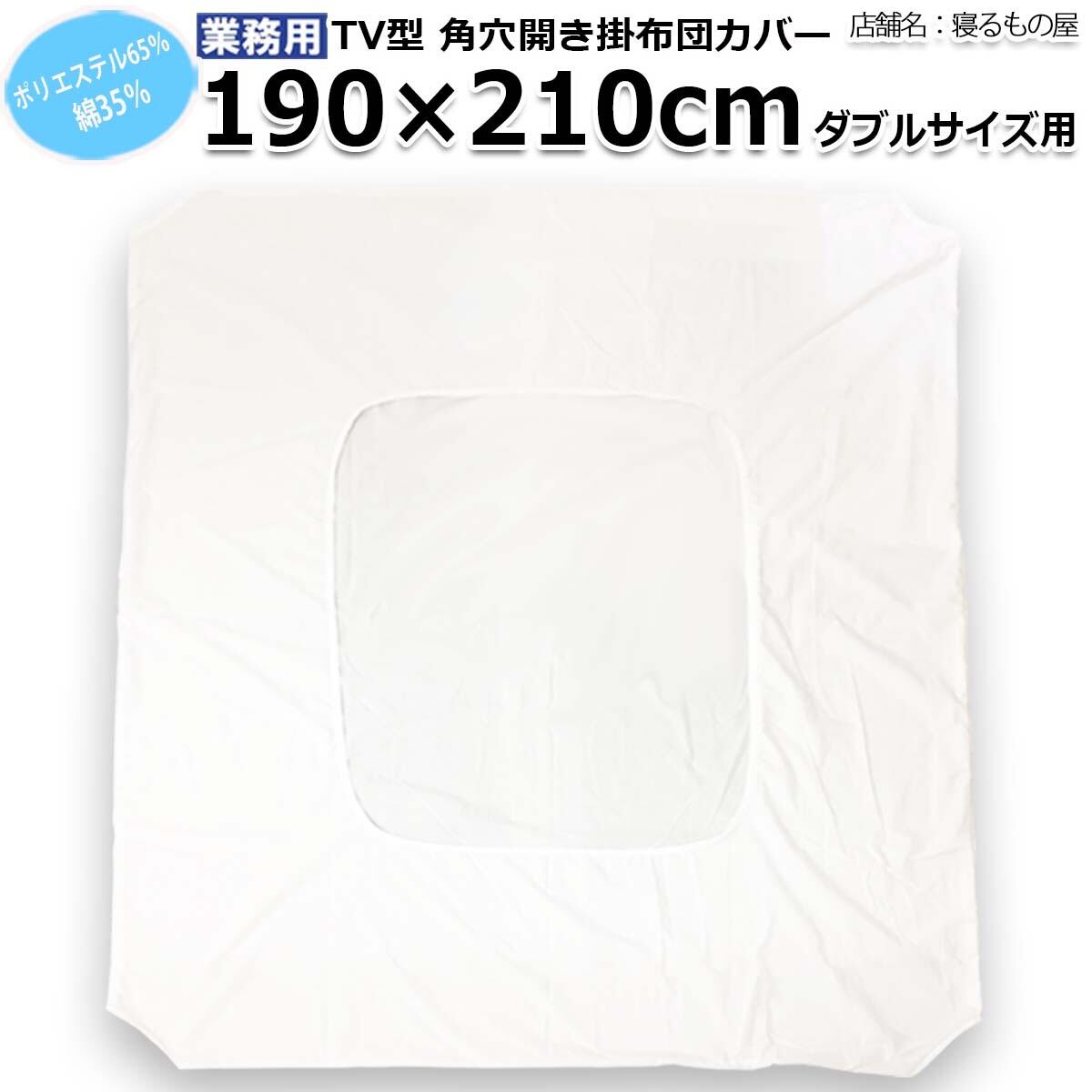布団カバー業務用【25枚入】ポリ65% 綿35% 190×210cm ダブルサイズ テレビ型 中央丸開き 角穴開き ホワイト 白 三露産業 ホテル 旅館 民宿 民泊/361901530