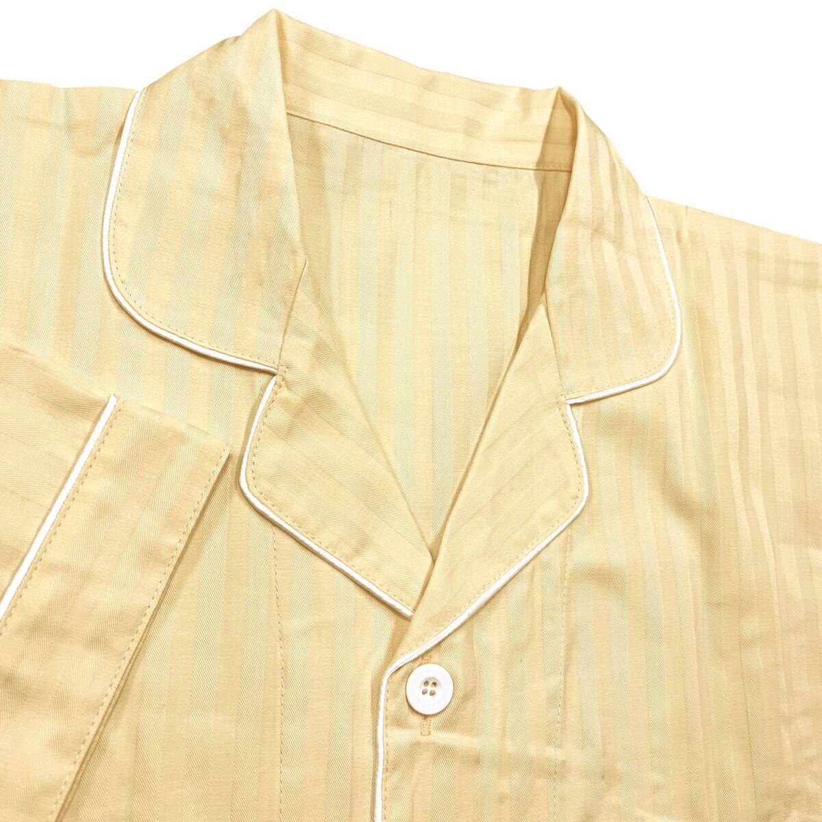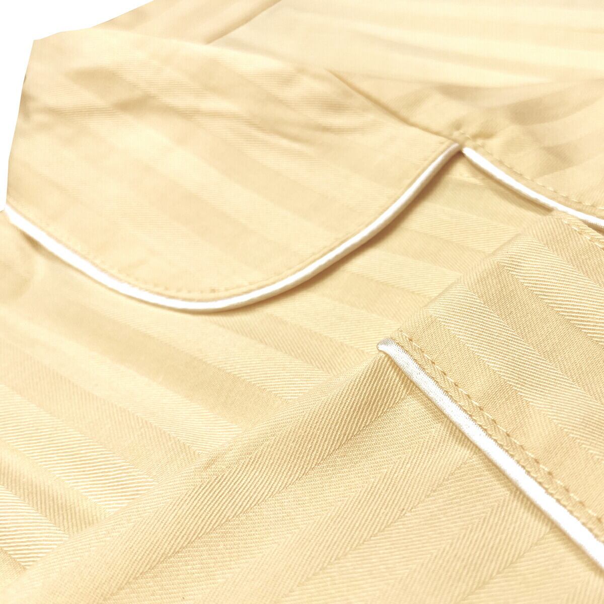 パジャマ業務用【40着入】ポリ65% 綿35% 大人用フリーサイズ サテンストライプ織り 前ボタン開きパジャマ上下セット ライトベージュ系 三露産業 病衣 部屋着 ホテル 旅館 民宿 民泊/362019470