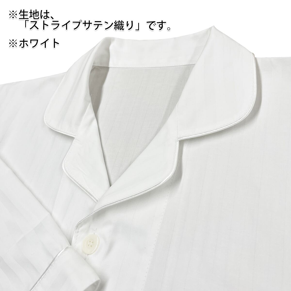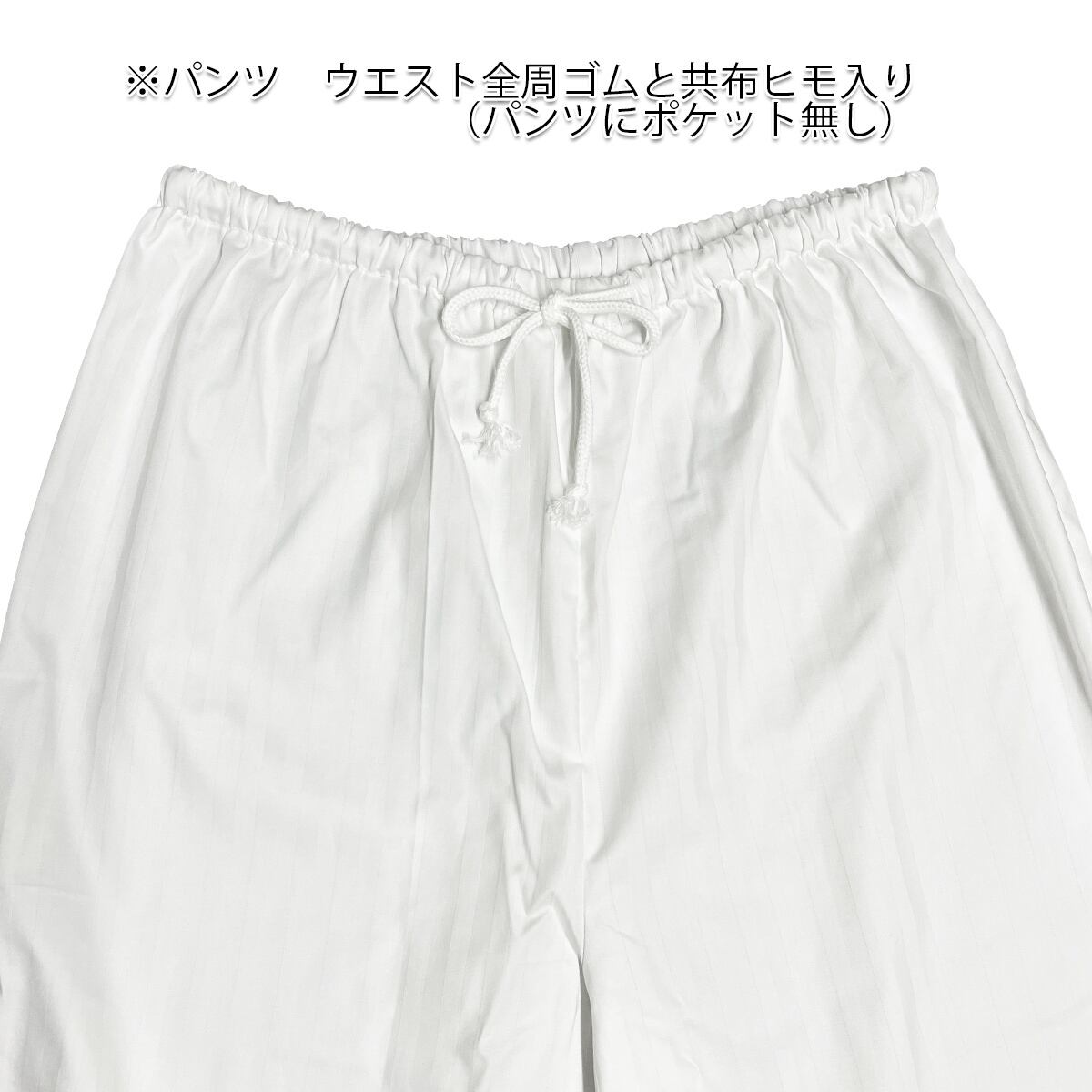 パジャマ業務用【40着入】綿70% ポリ30% 大人用フリーサイズ ストライプ織り前ボタン開き長袖 上下セット ホワイト 白 三露産業 パジャマ 病衣 部屋着 ホテル 旅館 民宿 民泊/367759920