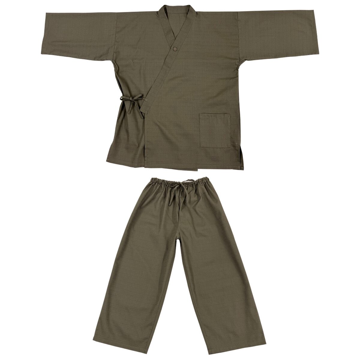 作務衣業務用【40着入】ポリ65% 綿35% 大人用フリー バニラン織り生地 上下セット ライトカーキ 三露産業 病衣 部屋着 ホテル 旅館 民宿 民泊/364238110