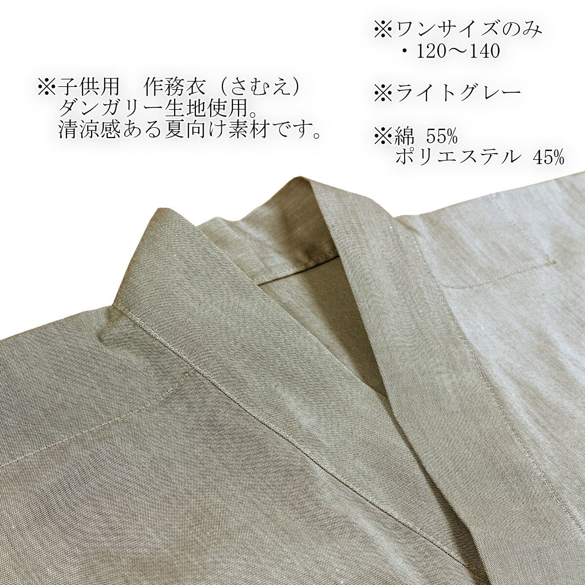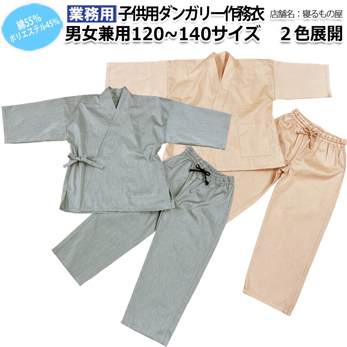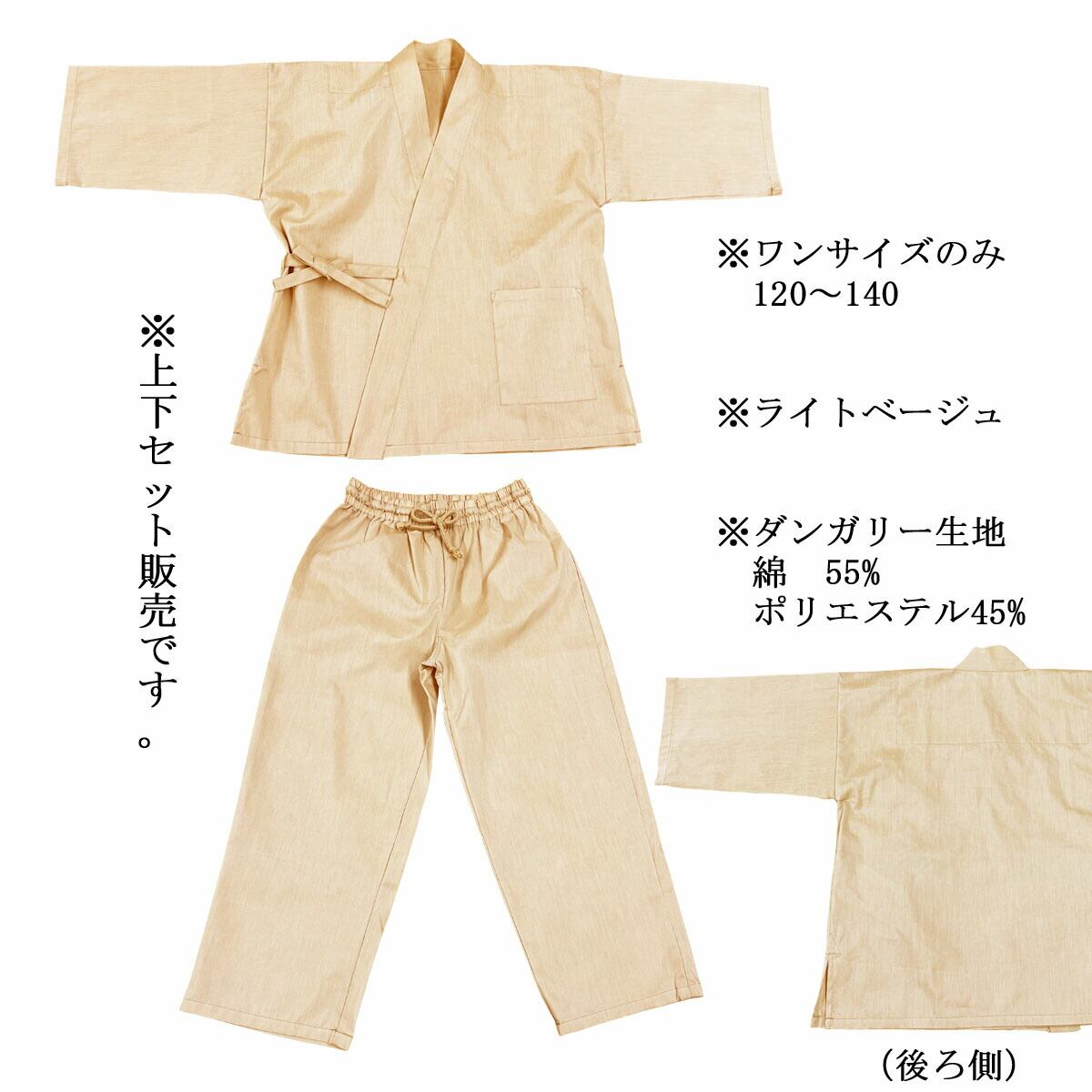 子供用作務衣業務用【50着入】綿55% ポリ45% 120〜140サイズ ダンガリー作務衣 上下セット 夏向ひんやり ライトグレー ライトベージュ 三露産業 病衣 部屋着 ホテル 旅館 民宿 民泊/362123360