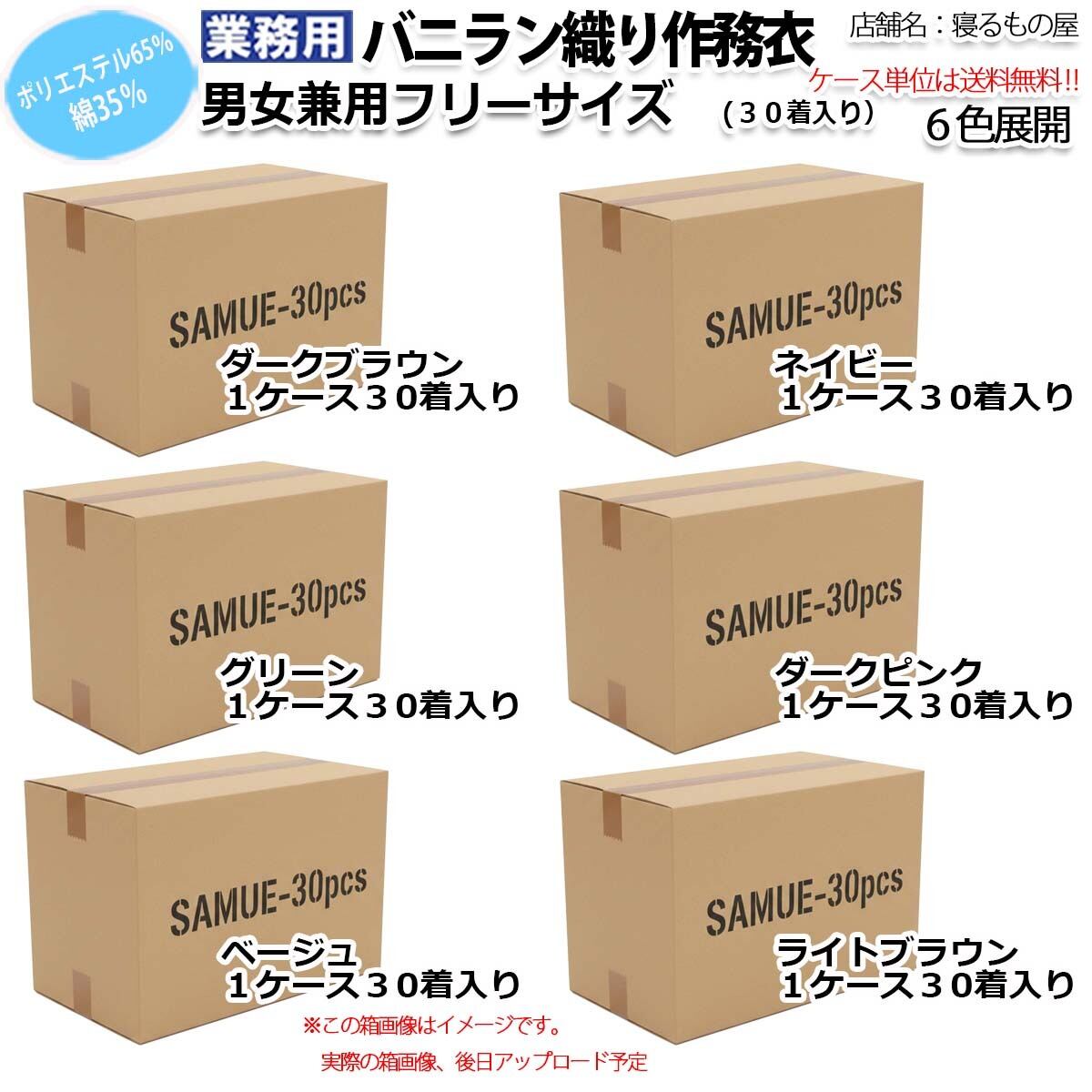 作務衣業務用【30着入】ポリ65% 綿35% 大人用フリーサイズ バニラン織り 上下セット 夏向ひんやり ポケット付き ダークブラウン、ネイビー、グリーン、ベージュ、ダークピンク、ライトブラウン 三露産業 病衣 部屋着 ホテル 旅館 民宿 民泊/362026360