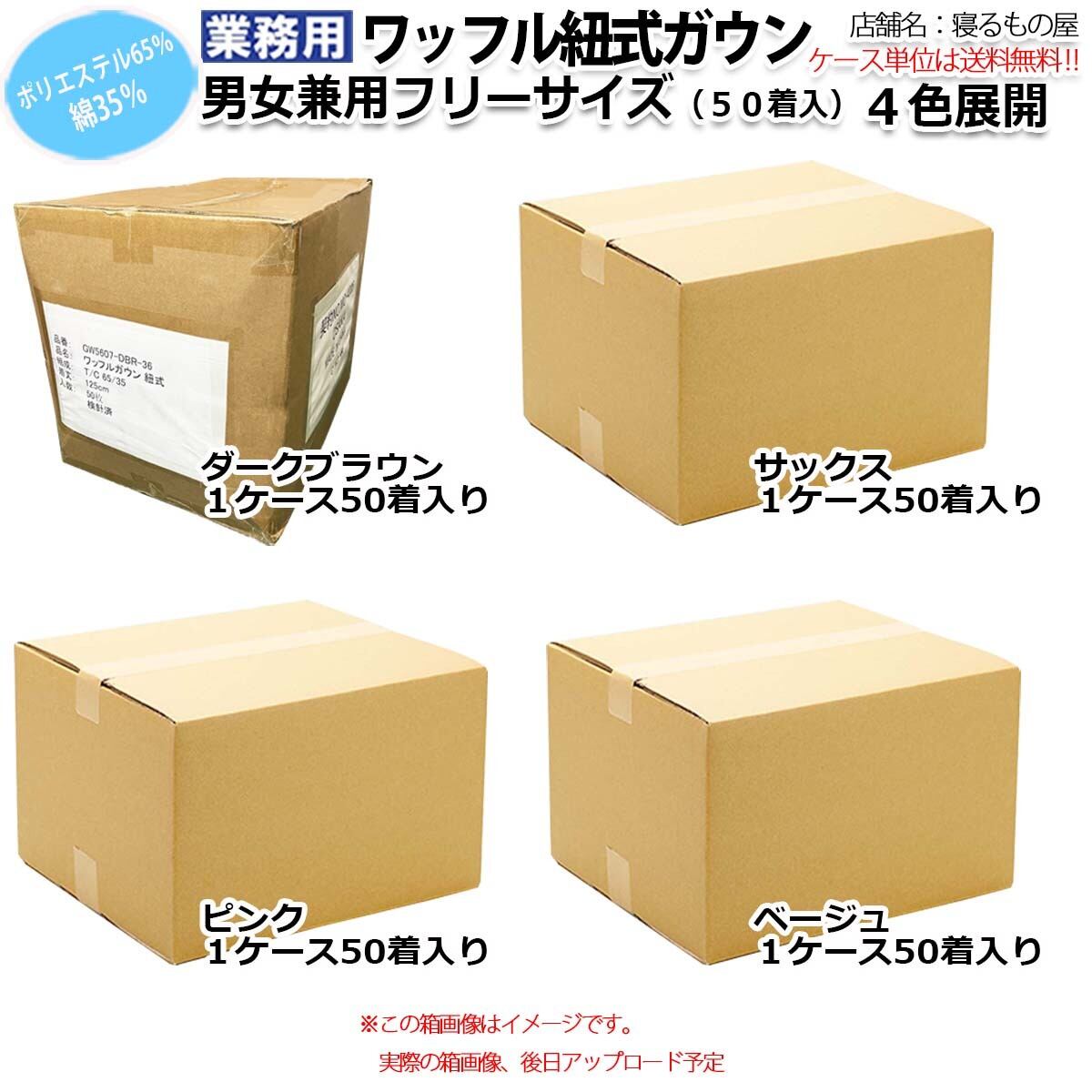 ガウン業務用【50着入】ポリ65% 綿35% 大人用フリーサイズ ワッフル紐式 ポケット付き ピンク サックス ブラウン ベージュ 三露産業 パジャマ 病衣 部屋着 ホテル 旅館 民宿 民泊/367715020
