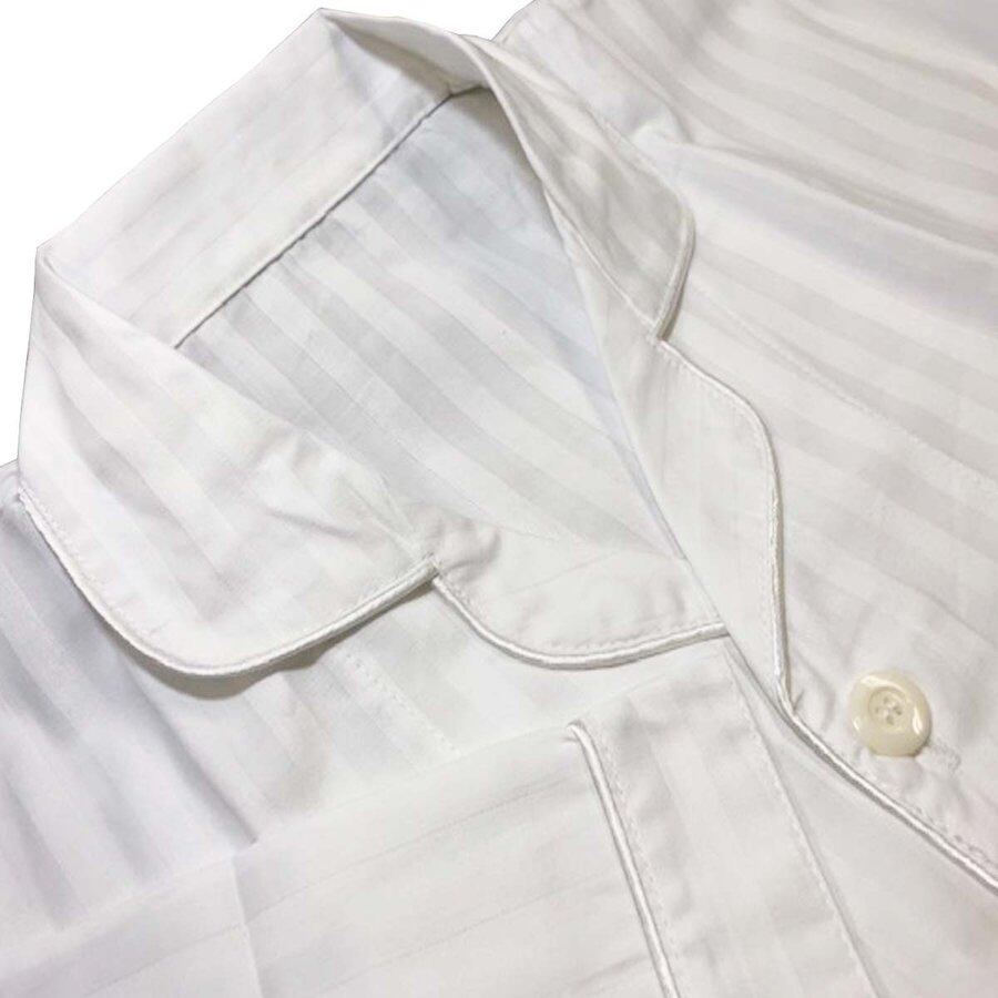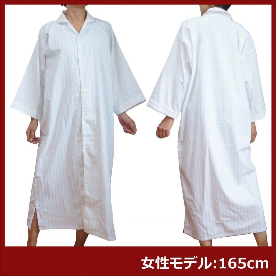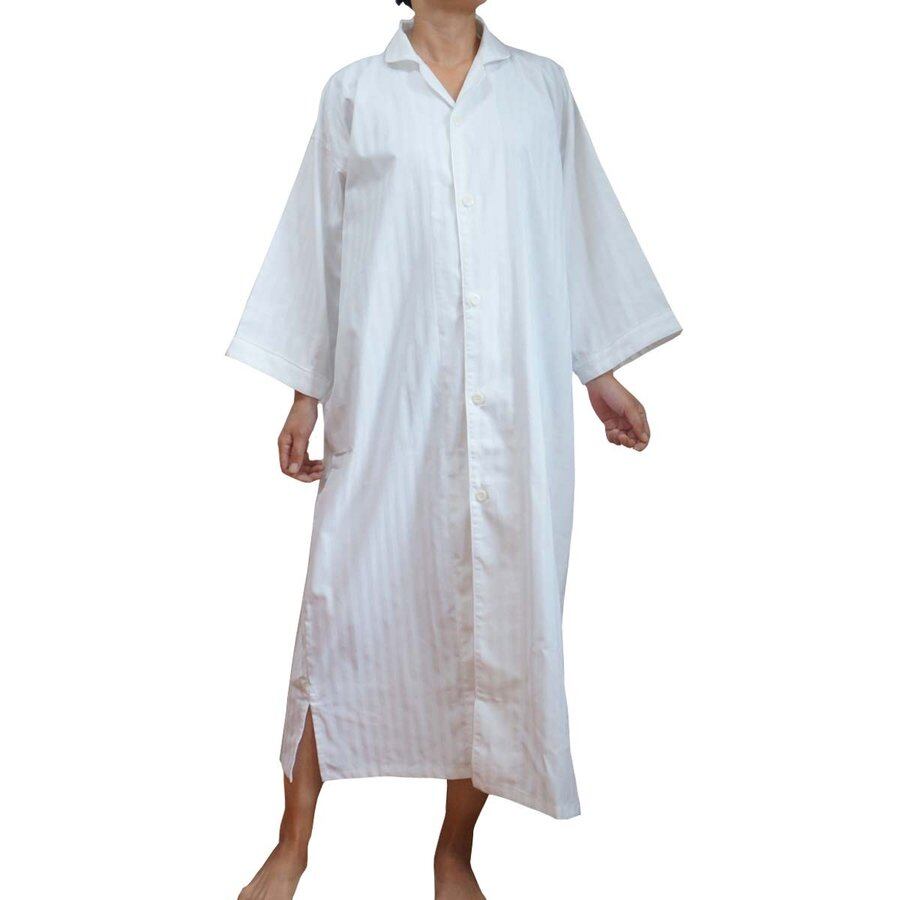 ガウン業務用【50着入】綿70% ポリ30% 大人用フリーサイズ ストライプ織り前ボタン開き ホワイト 白 三露産業 パジャマ 病衣 部屋着 ホテル 旅館 民宿 民泊/367758210