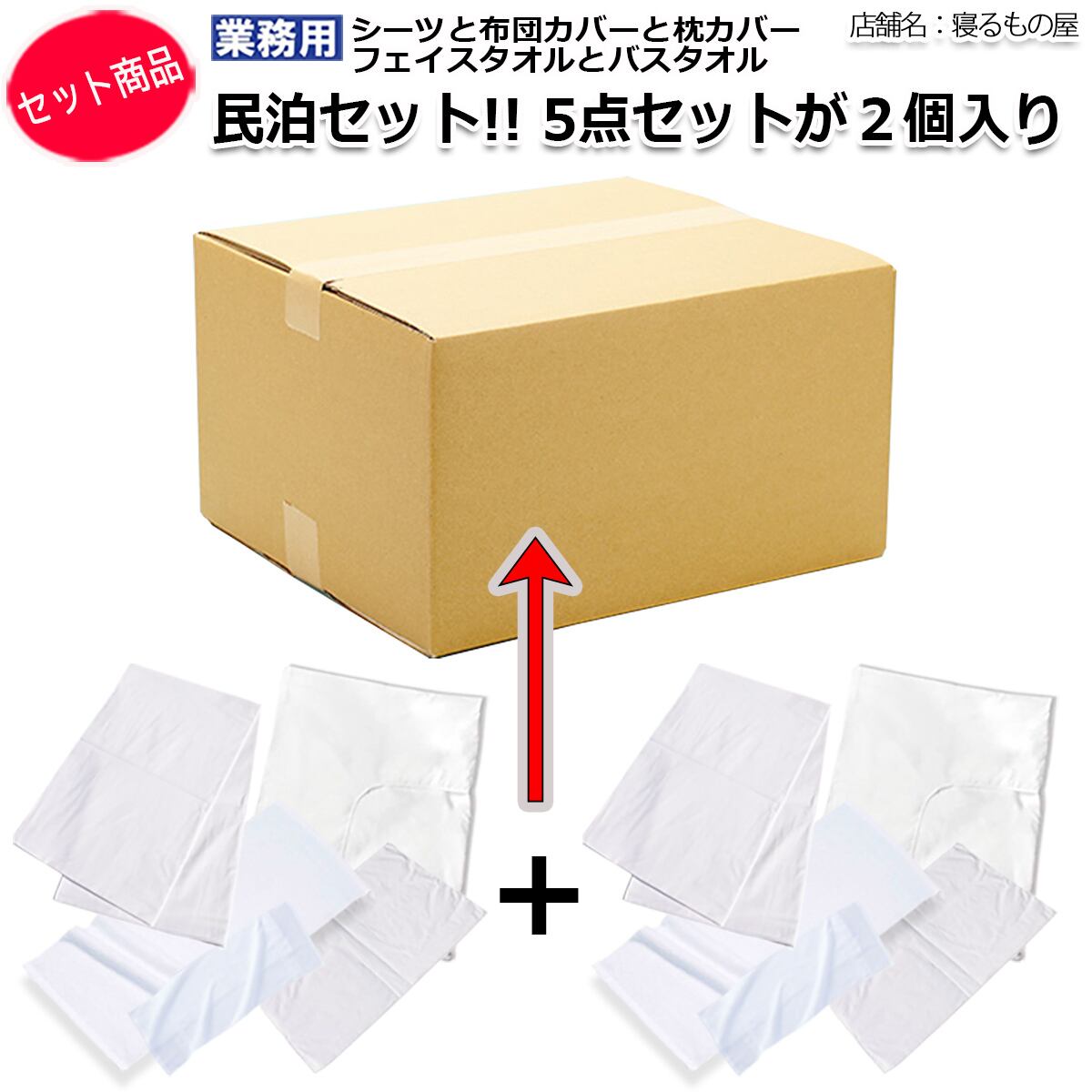 民泊セット業務用【5点セットの2個入り】シングルサイズ【シーツ 布団カバー 枕カバー フェイスタオル バスタオル 合計5点セット】ホワイト 白 三露産業 一人暮らし ホテル 旅館 民宿 民泊/369992010