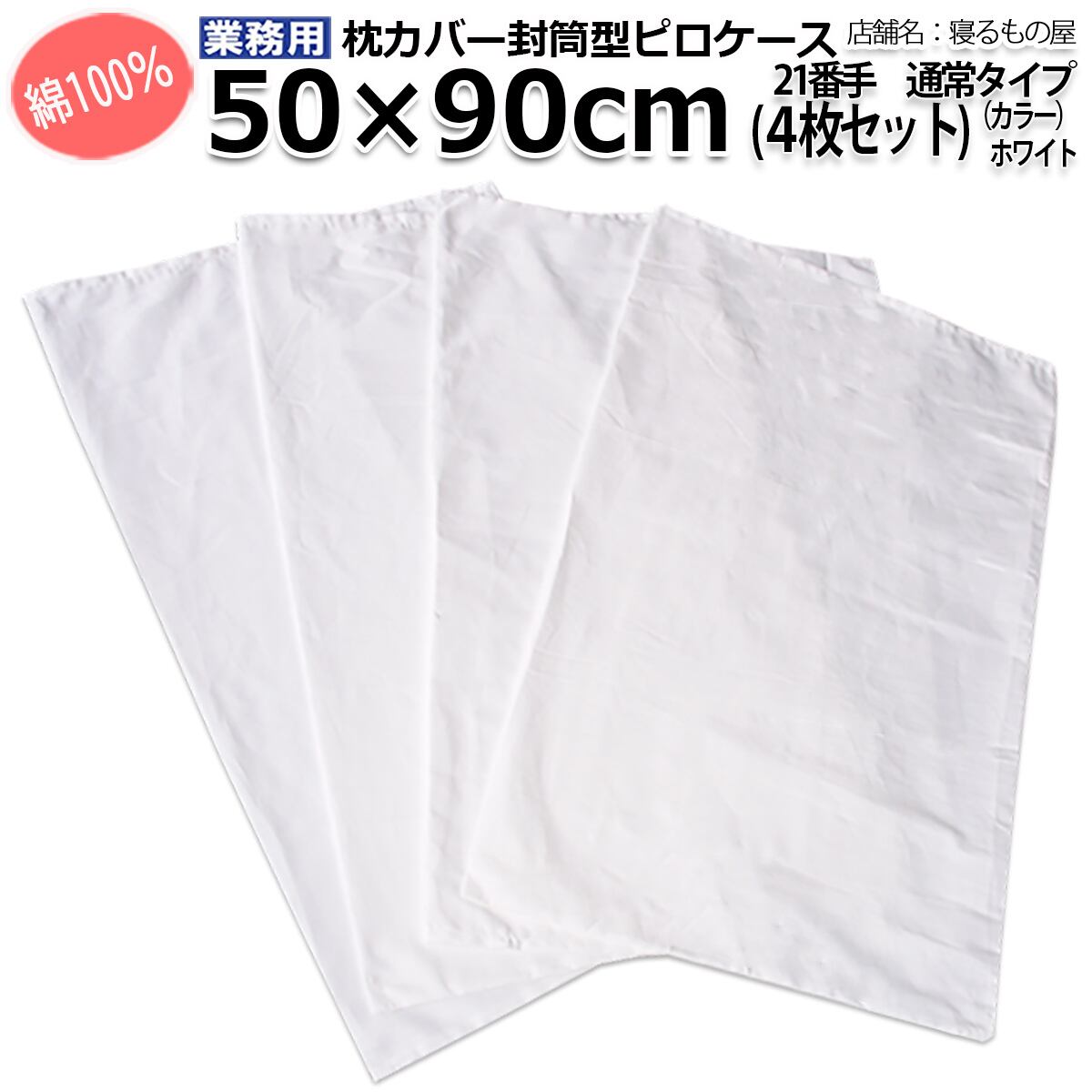 枕カバー業務用【4枚入】綿100% 50×90cm 通常タイプ ポスト投函発送配達 ピローケース 封筒型 ホワイト 白 三露産業 ホテル 旅館 民宿 民泊/367560990