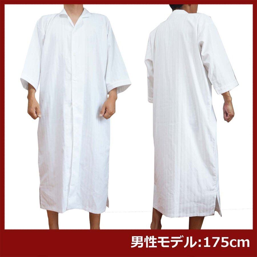 ストライプ織り生地のボタン開きガウンパジャマです。